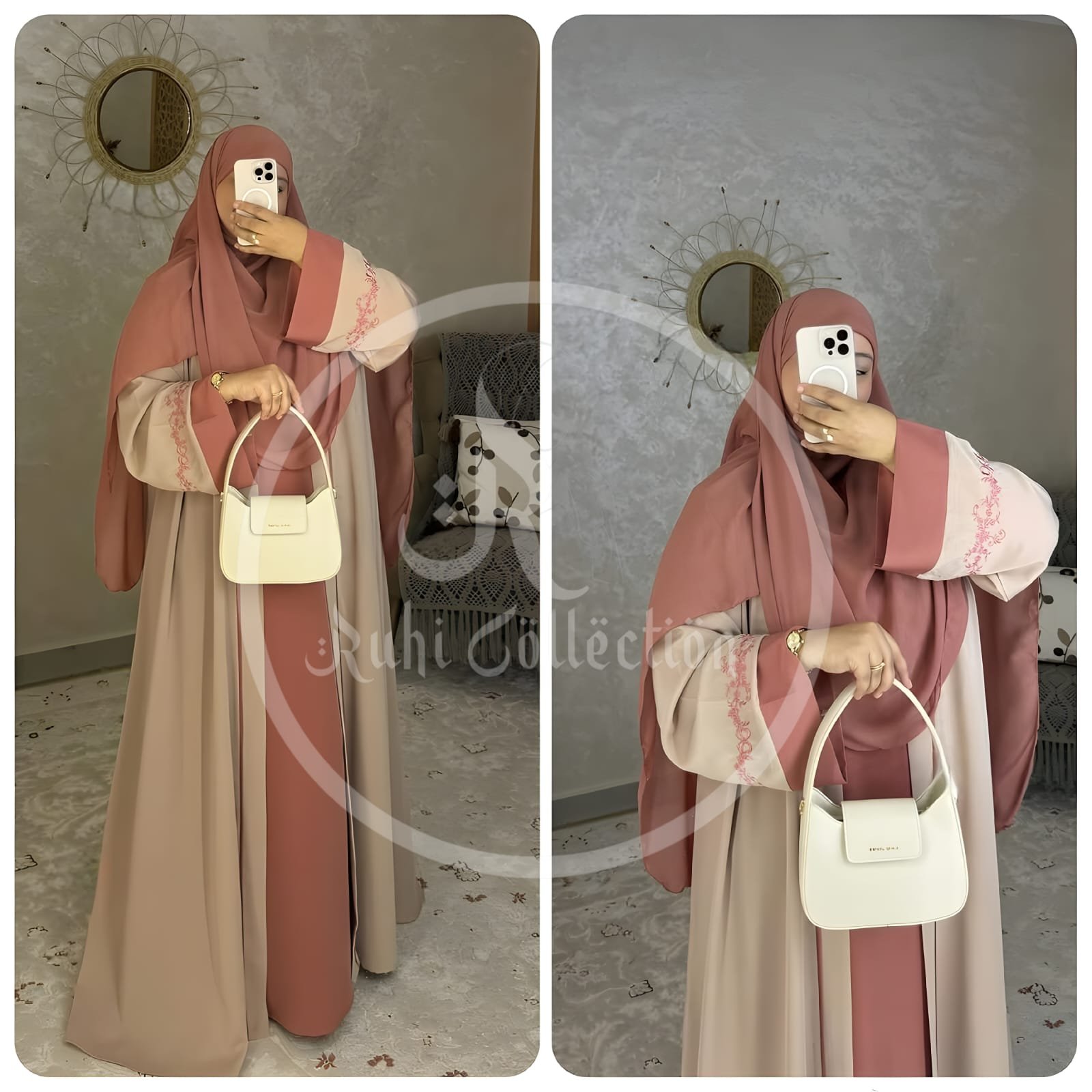 ডাবল পাট এমব্রয়ডারি কাজ বোরকা ( মিষ্টি কালার )